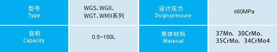1、产品详细参数参考无缝气瓶(TS类)所列; 2、可根据用户要求设计制造产品明细中规定的各压力、容积产品。